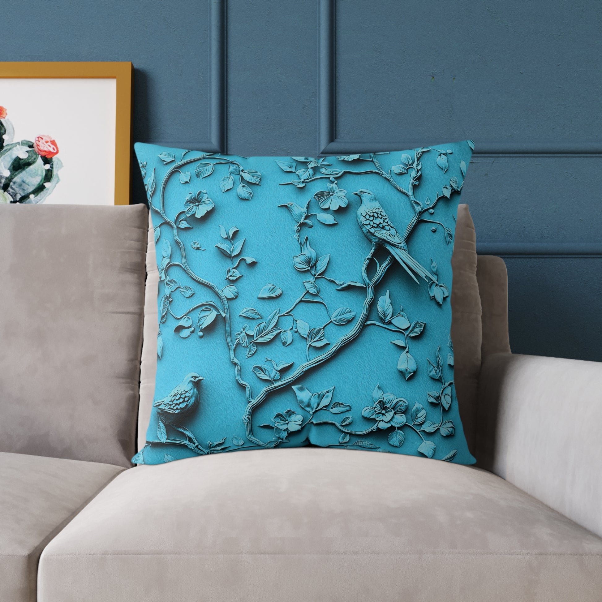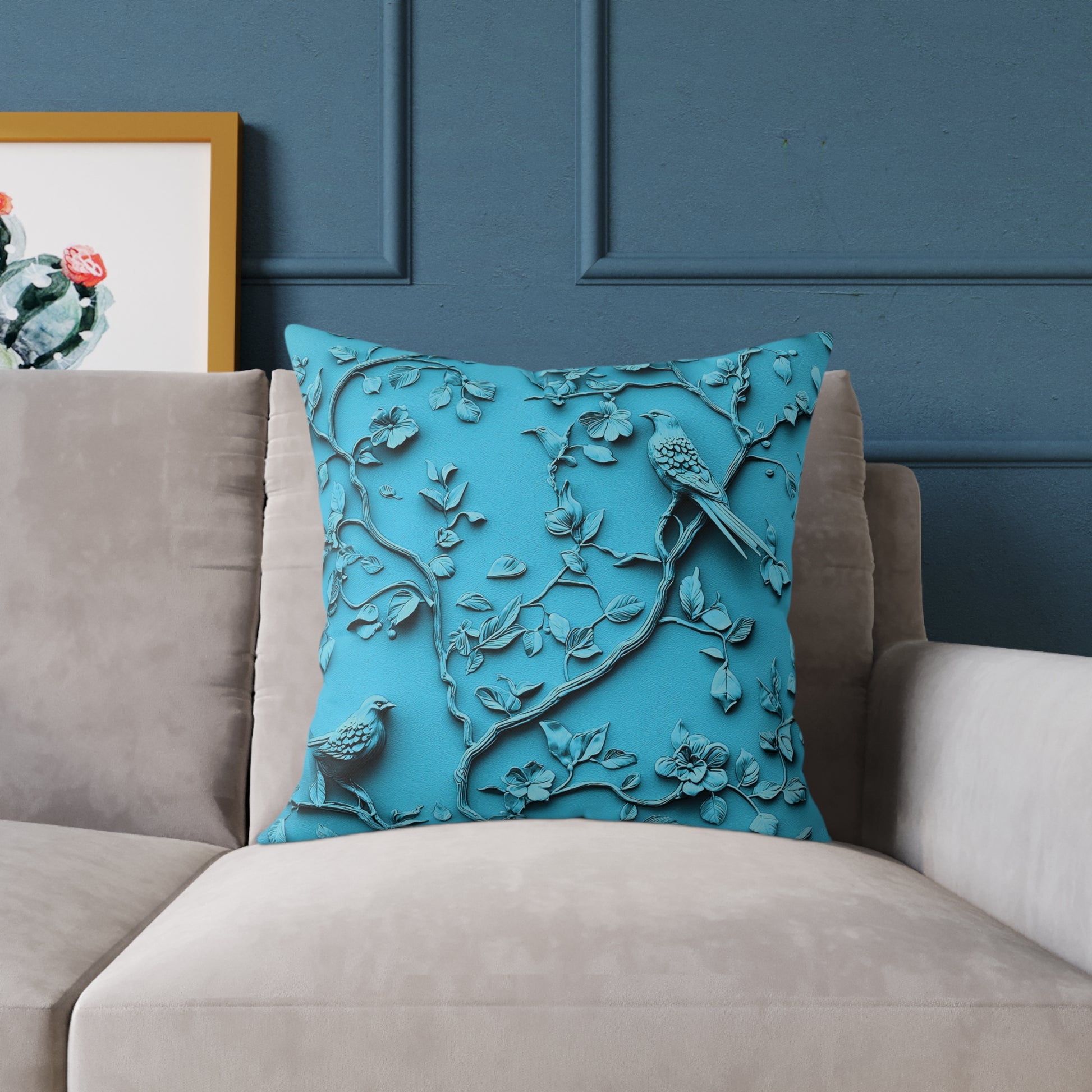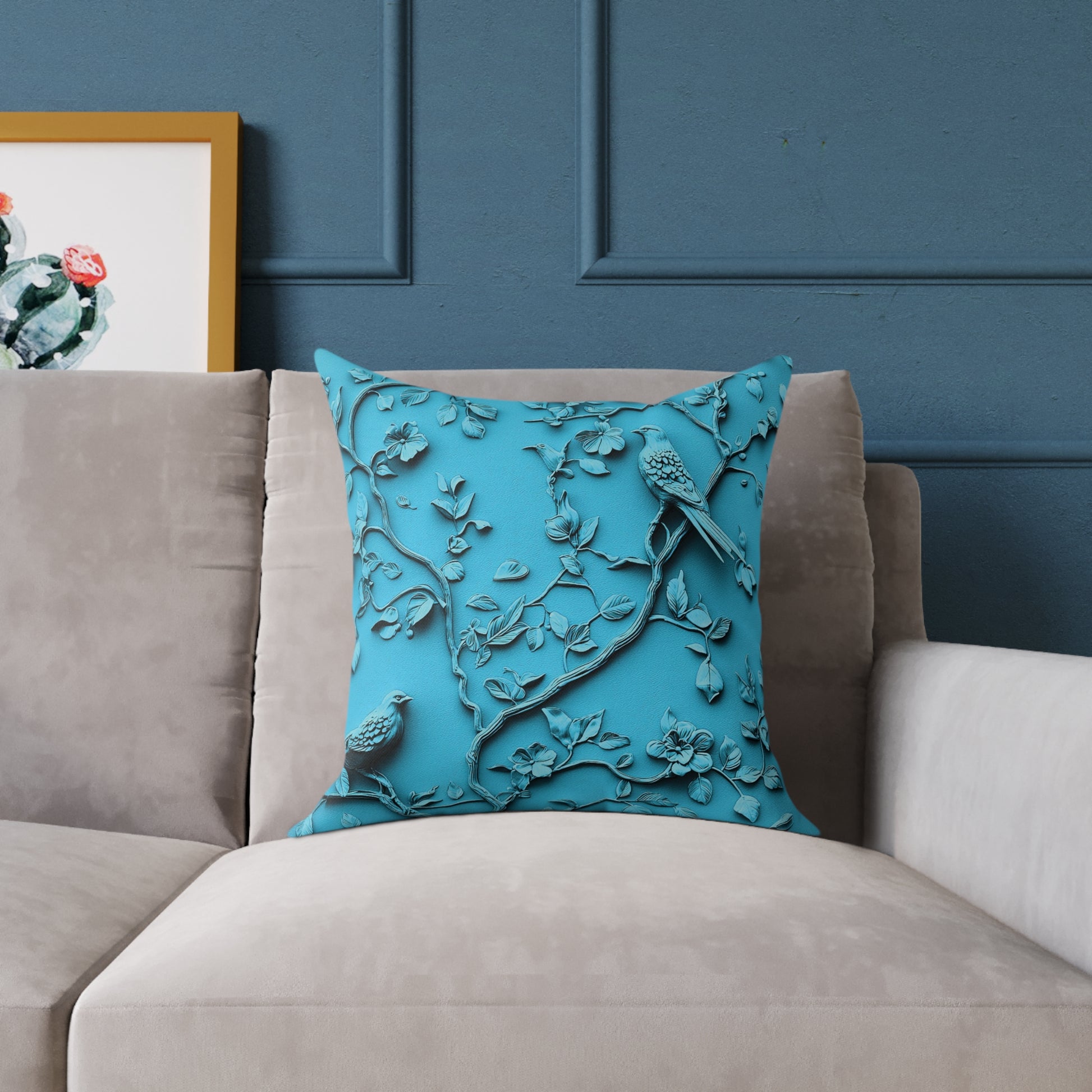 **Blue Vine Chinoiseries - Square Poly Canvas Pillow UK