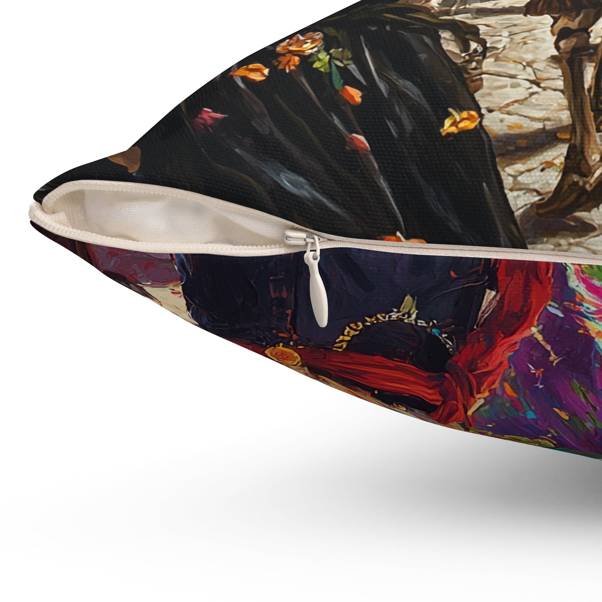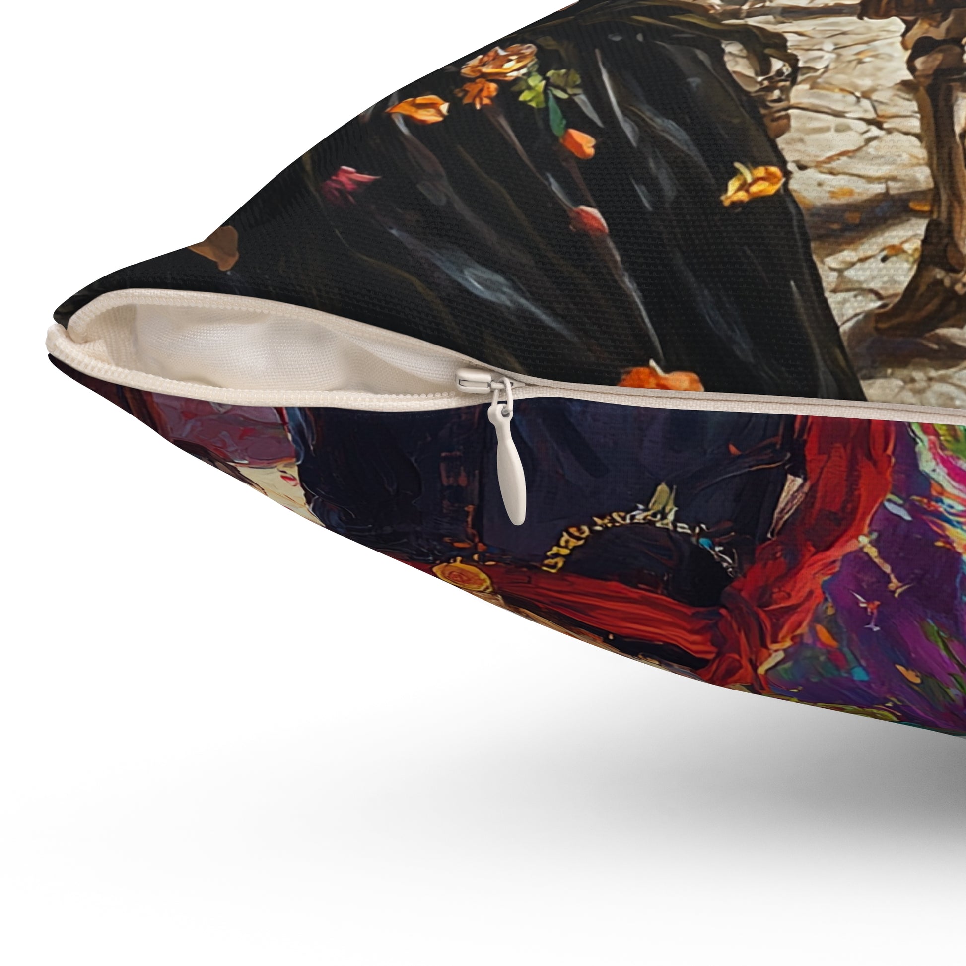 Transform your living space with this vibrant Spun Polyester Square Pillow, inspired by the lively spirit of celebrations. This eye-catching pillow features a double-sided print that radiates joy and festivity, making it perfect for adding a splash of color to your home. Ideal for Dia de los Muertos or any festive occasion, it invites warmth and cheer into your cozy corners. Perfect for lovers of culture and art, this pillow is a great gift to symbolize love and remembrance during special moments. Bring a touch of the celebration to your couch, chair, or bed and create an inviting atmosphere that resonates with happiness.